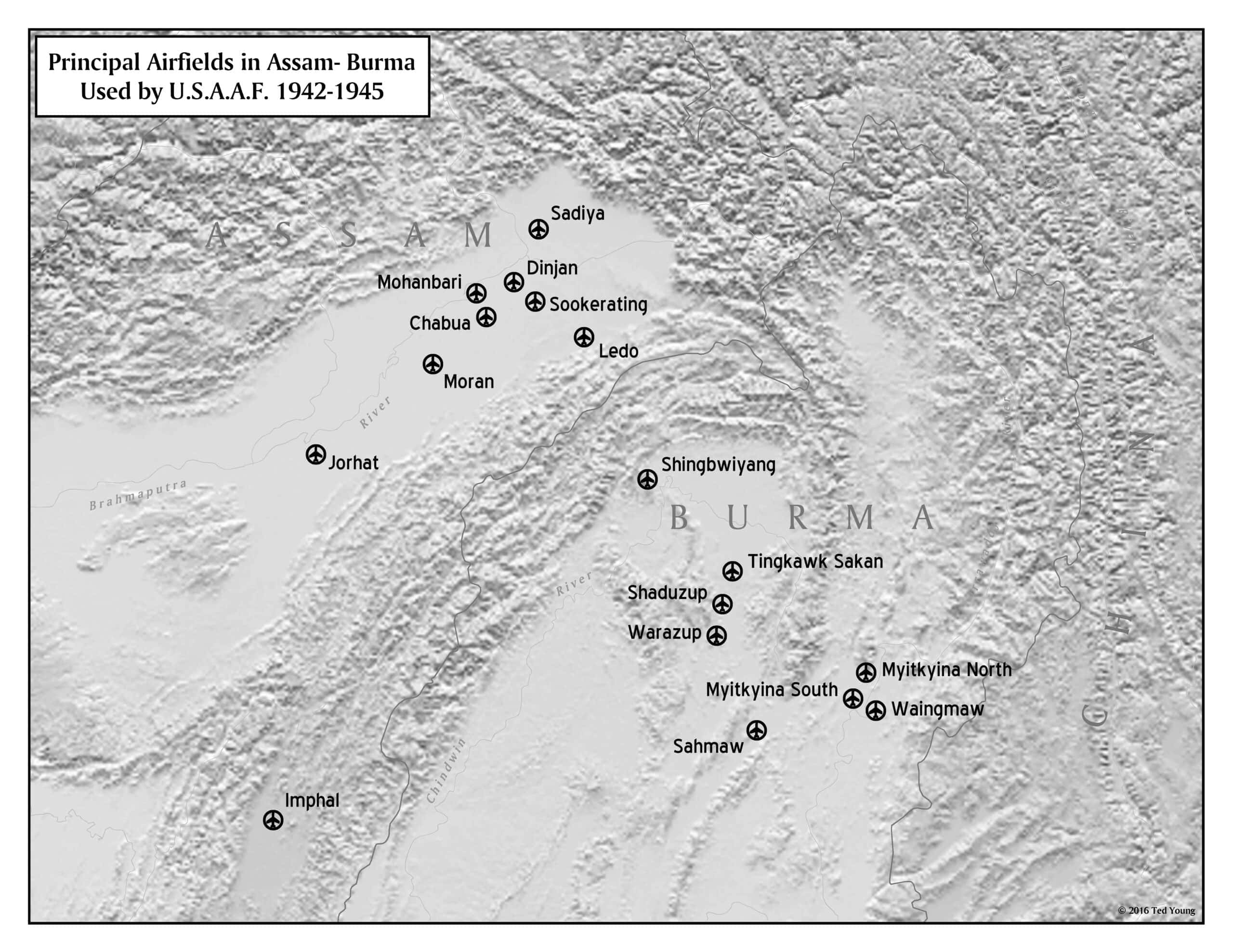 Maps created for Edward Young’s books The Tenth Air Force in World War II and Death From Above, the Seventh Bombardment Group